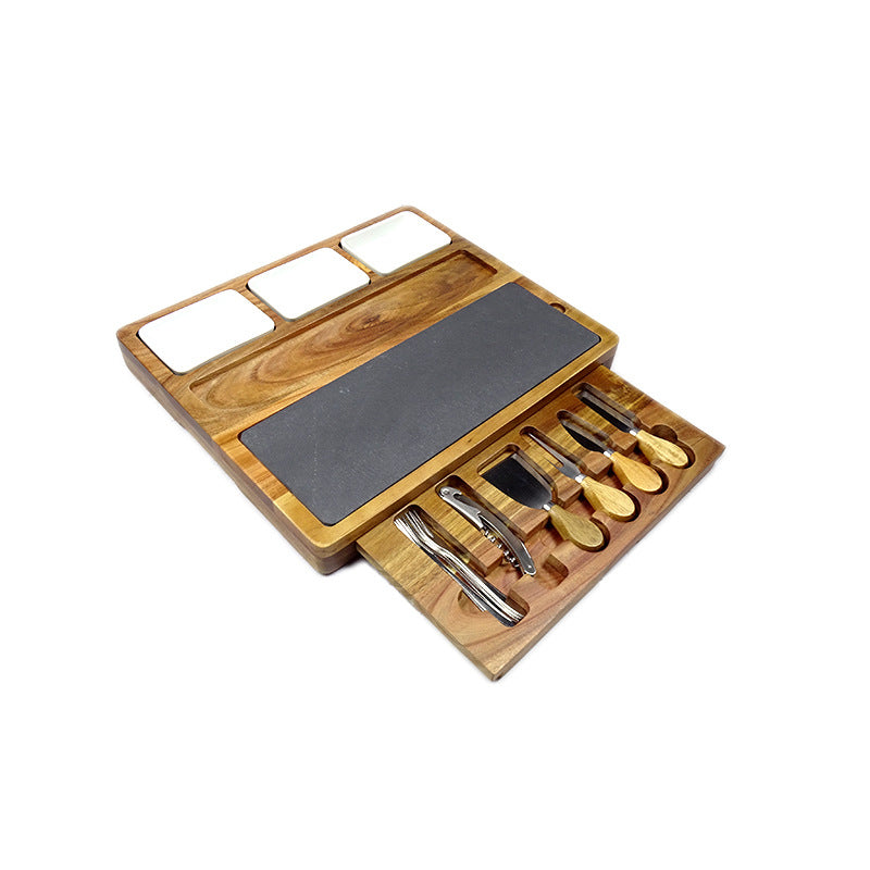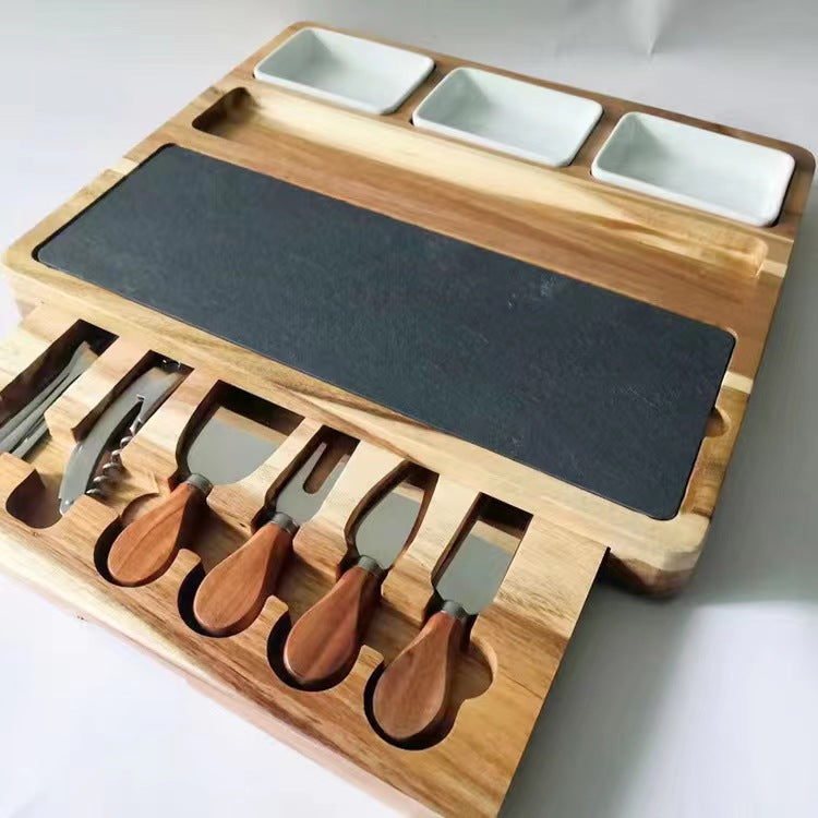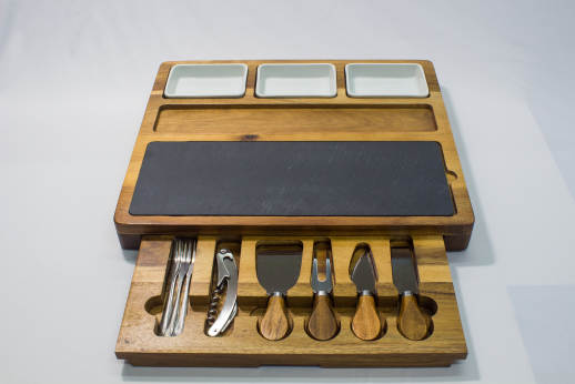 Solid wood Cheese Board set With 6 Piece Stainless Steel Cutlery Set and Stone